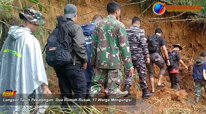 Longsor di Talun Pekalongan merusak dua rumah dan memaksa 17 warga mengungsi. Hujan deras memicu pergerakan tanah di tebing Sungai Kupang.