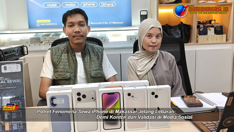 Duniakreasi.id – Menjelang Hari Raya Idulfitri, berbagai tren unik kerap muncul di masyarakat. Salah satu fenomena yang kini mencuri perhatian terjadi di Kota Makassar, Sulawesi Selatan, yakni meningkatnya permintaan jasa sewa iPhone. Bagi sebagian orang, ponsel premium tersebut bukan sekadar alat komunikasi, melainkan juga simbol gaya hidup sekaligus sarana membuat konten media sosial.