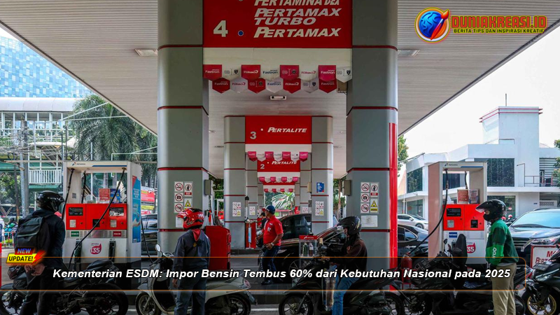 Duniakreasi.id– Kementerian Energi dan Sumber Daya Mineral (ESDM) mengungkapkan bahwa ketergantungan Indonesia terhadap impor bahan bakar minyak (BBM), khususnya bensin, masih sangat tinggi. Pada tahun 2025, impor bensin bahkan mencapai sekitar 60 persen dari total kebutuhan nasional.