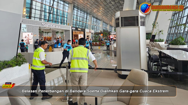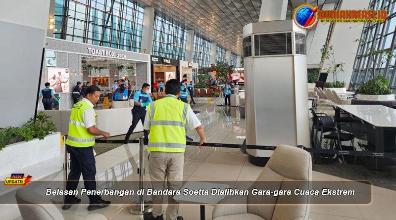 Duniakreasi.id – Cuaca ekstrem yang melanda kawasan Bandara Internasional Soekarno-Hatta (Soetta) pada Senin (6/4/2026) berdampak signifikan terhadap operasional penerbangan. Belasan penerbangan terpaksa dialihkan ke bandara lain demi menjaga keselamatan penumpang dan awak pesawat.